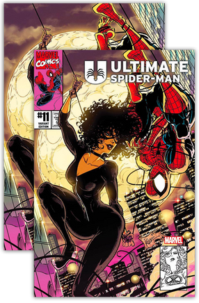 This Kaare Andrews Exclusive Trade & Virgin Variant Pack includes one Trade Dress edition and one Virgin edition, giving collectors both the standard logo version and the clean, text-free presentation. Andrews’ dynamic composition and sharp, modern styling make this a standout pair for Ultimate Universe and Spider-Man collectors.