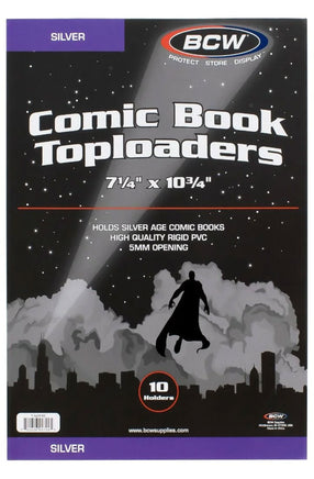 Its short-side open design allows for easy insertion and removal while keeping comics firmly secured, making it ideal for storage, transport, grading preparation, or professional display. Precision-sized specifically for Silver Age comics, this toploader offers a durable, rigid structure that protects against bending, edge wear, and environmental exposure.